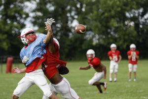 It’s still plenty light-hearted at times — Rutherford said his assistant coach “isn’t Aaron Rodgers” when he missed an open man during the drill — but practice was just as meticulous as the film session. At one point, they even practiced how defenders should block downfield for an interception. These late-summer dress rehearsals are painstakingly specific.